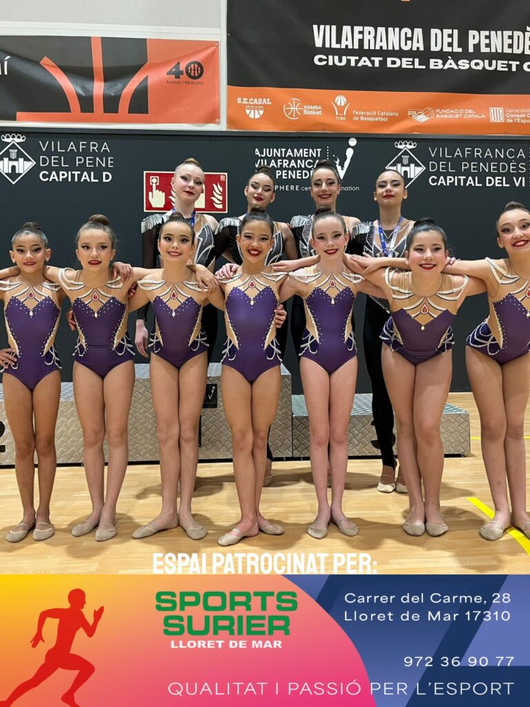 Gran actuació de l’E.G. Rítmica Lloret a la 2a fase de la Copa Catalana de conjunts nivell federat, celebrada a Vilafranca del Penedès, amb resultats destacats en diverses categories: el conjunt cadet va assolir una meritòria 3a posició, les alevines van quedar a tocar del podi amb una 4a plaça, i en categoria juvenil, Marina Poch, Ivet Arandia i Noa Arandia es van proclamar campiones amb una brillant 1a posició, confirmant el gran nivell i la progressió del club.