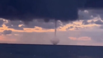 Impresionante manga marina sorprende en un amanecer espectacular este viernes en Lloret de Mar