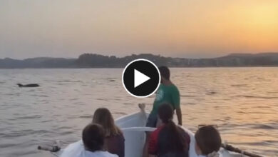 Un grup de sis dofins sorprèn el Club Rem Pescadors de Lloret durant el seu entrenament