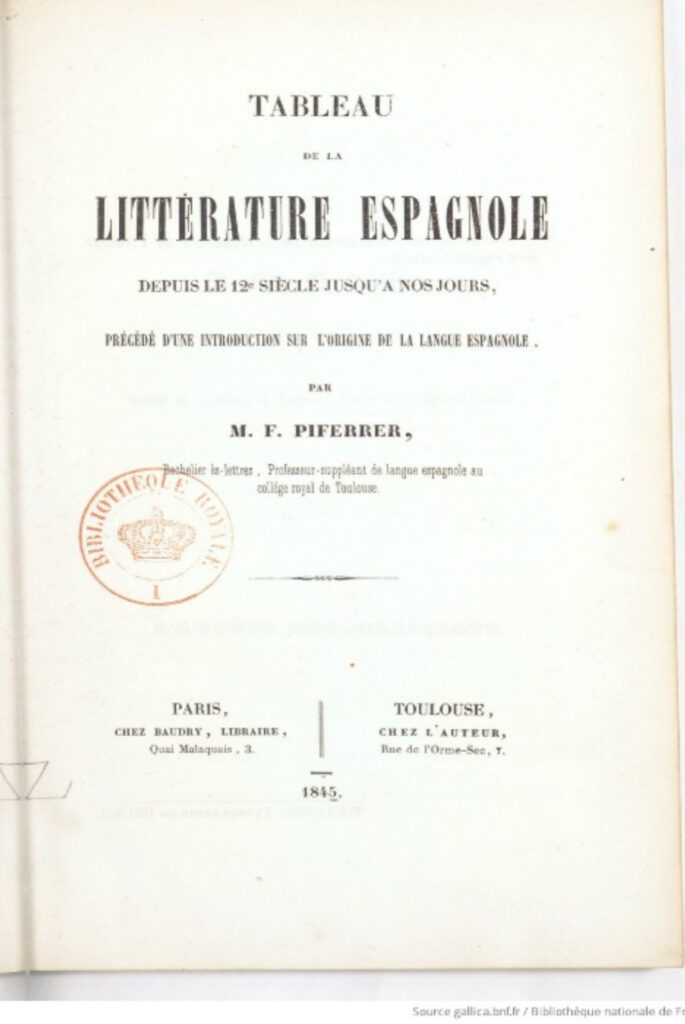 –Tableau de littérature espagnole depuis le XIIe siècle.1845