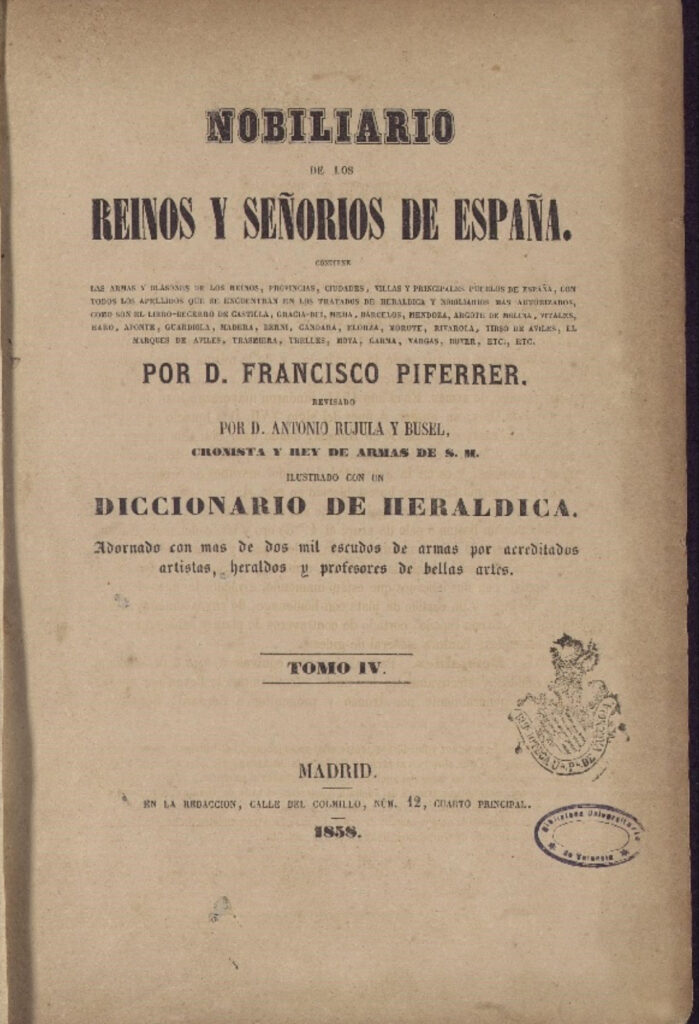 También es autor Piferrer del Diccionario de la Ciencia Heráldica y “Tratado de Heráldica y Blasón” en 1854.