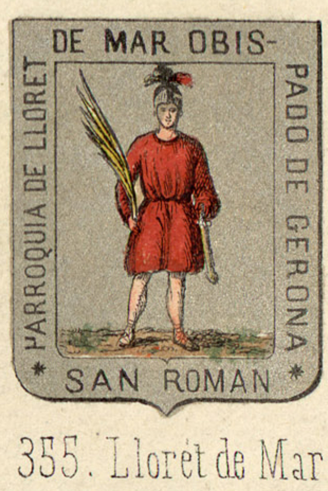 –Trofeo heroico (1860). Con las armas, emblemas y blasones de las provincias y principales ciudades y villas de España. Dentro de esta obra encontramos las armas municipales de Lloret de Mar (su municipio natal) (recortado de la lámina 15): «355. Lloret de Mar. (..) El municipio ostenta por blason un ramo de laurel; pero la parroquia pinta en su sello la imágen de San Roman.» (pág. 164)