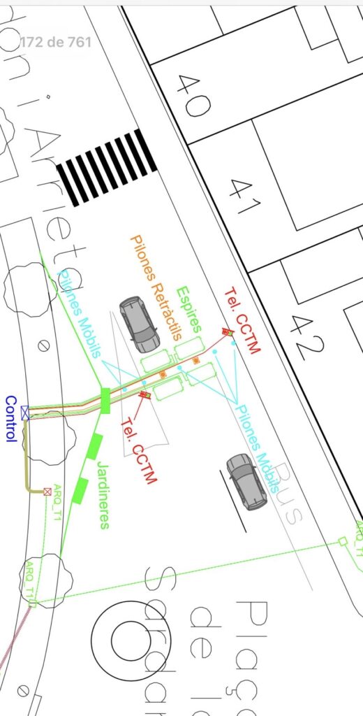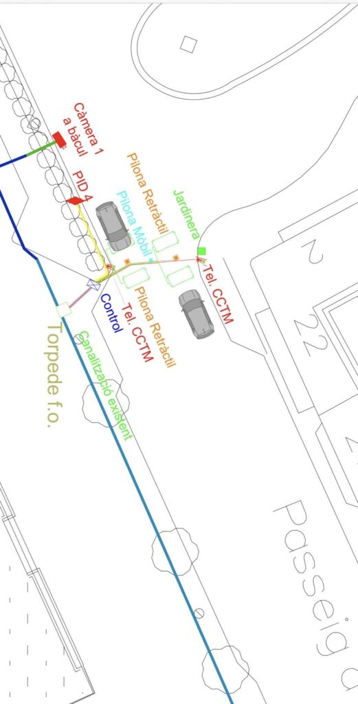 Per altra banda, he quedat sobtat de la distància que hi ha entre pilona i pilona, ja que entremig hi podria passar un cotxe. I, esperant que em contestessin —cosa que no ha estat possible—, he anat a cercar el projecte d’obres i he vist que la intenció és posar una “pilona mòbil”, és a dir, una de les de cautxú com les que hi ha a les voreres.