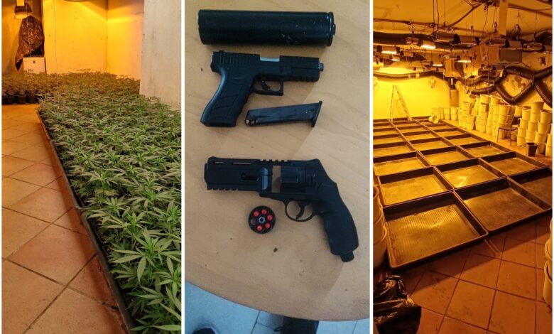 A dins van identificar un jove i es va localitzar una plantació de marihuana amb un total de 1000 plantes en estat de creixement. També es van trobar 400 grams de cabdells i dues armes, una de foc amb 14 cartutxos de 9 mm i amb un dispositiu silenciador, una altra arma tipus detonadora.