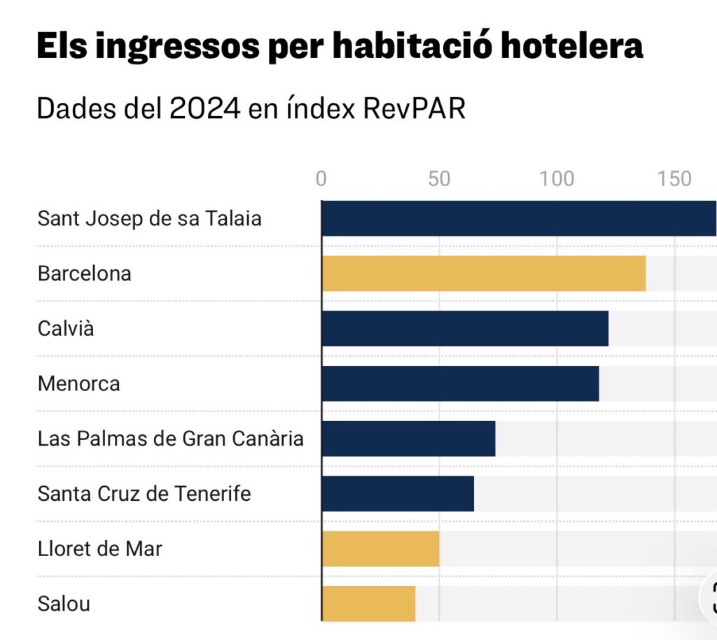 El Cercle d’Economia assenyala que, mentre Barcelona ha aprofitat l’explosió del turisme urbà, Lloret i altres municipis costaners com Salou viuen una realitat diferent. La popularitat de Barcelona s’ha traduït en un alt ingrés per habitació disponible (RevPAR), gràcies a la gran oferta d’hotels de luxe i apartaments turístics. En canvi, Lloret de Mar, amb menys establiments de luxe, presenta una rendibilitat més baixa en comparació amb altres destinacions turístiques com les Illes Balears o Canàries.