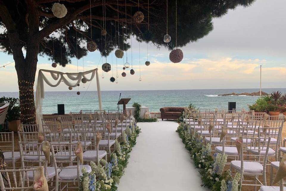 • Espacio preparado para una boda en el hotel Santa Marta de Lloret de Mar.