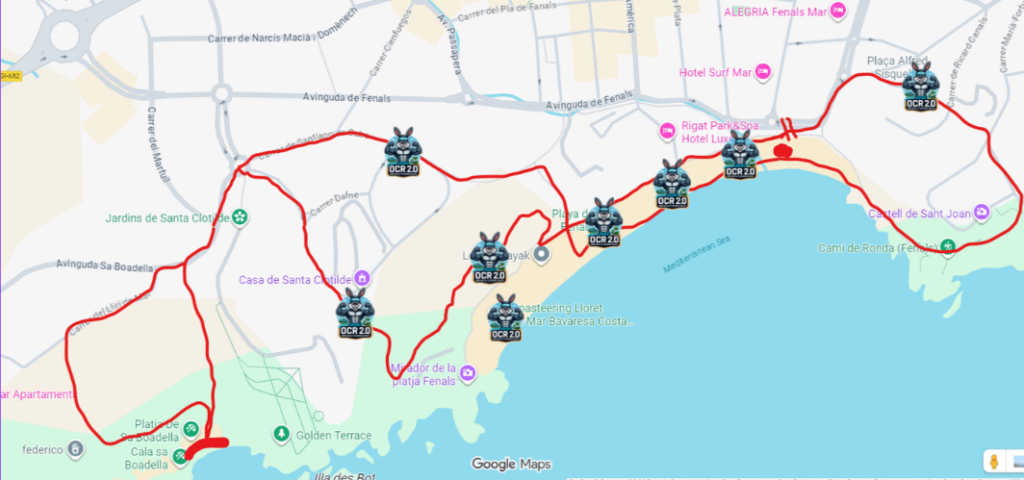 La cursa tindrà un recorregut de 5,8 quilòmetres entre la platja i els camins de ronda de Fenals, amb sortida des de la zona de carpes i escenari. Al llarg del circuit, els participants hauran de superar diverses proves d’estil OCR com pujar per cordes, arrossegar rodes de camió o passar per sota de xarxes, entre d’altres desafiaments físics.