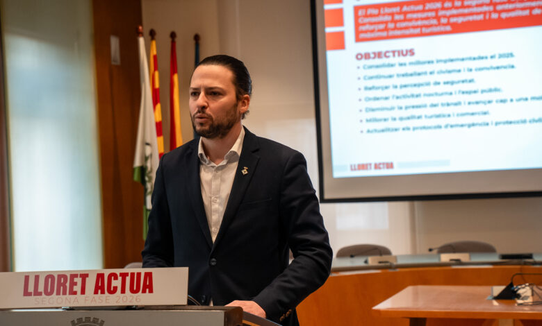 L’alcalde de Lloret, Adrià Lamelas, ha presentat avui la segona fase del Pla Lloret Actua, un projecte transversal que dona continuïtat a les accions iniciades l’any passat i que té per objectiu millorar la convivència, reforçar la seguretat i ordenar l’espai públic.
