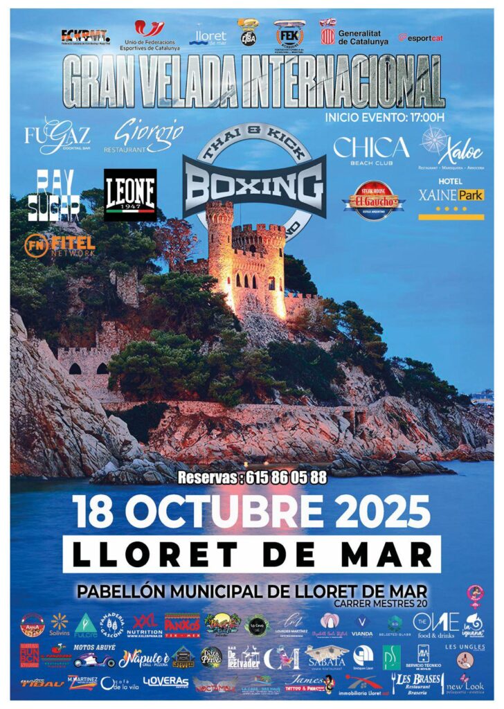 El sábado 18 de octubre se celebra la gran velada internacional de boxeo y kick boxing en Lloret de Mar. Los asistentes podrán ser partícipes de combates tanto de amateurs como profesionales pactados según su categoría y peso. Cabe destacar que algunos de los participantes forman parte del Campeonato de España en la modalidad de kick boxing K1 con un combate estelar: García vs. Kamissoko.