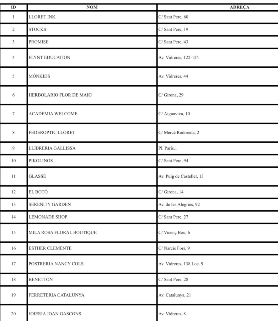 Y si quieres hacer una ruta y descubrir todos los escaparates participantes, aquí te dejamos la lista de los 20 comercios inscritos este año para que no te pierdas ninguno: