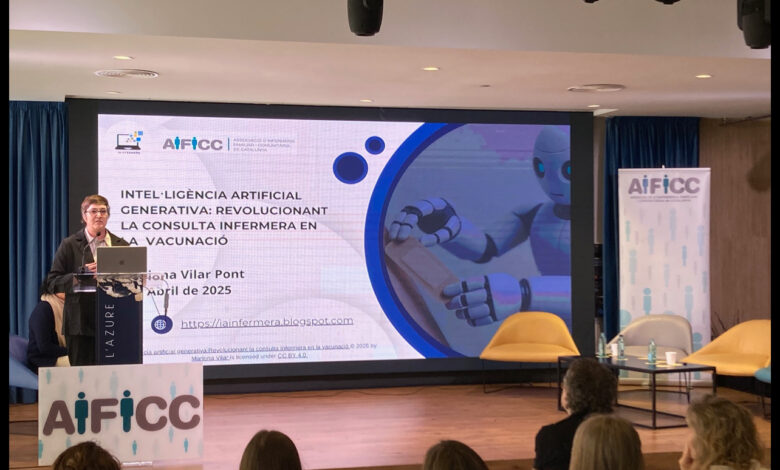 L’esdeveniment ha destacat especialment per la sessió dedicada a la intel·ligència artificial (IA) en l’àmbit de la infermeria d’atenció primària. La ponent Mariona Vilar, infermera especialista en salut familiar i comunitària, ha presentat casos reals d’aplicació com l’assistent virtual Informació Calendari Vacunal a Catalunya, un sistema tipus ChatGPT que permet consultar de forma personalitzada les pautes vacunals oficials segons edat i grups de risc.