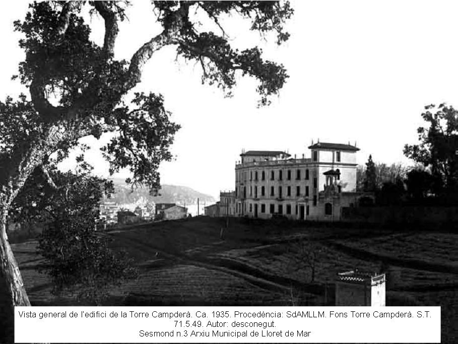 Posteriormente, Torre Lunática fue conocida con el nombre de su fundador: “Torre Campdera”. Son de destacar también los trabajos de Laura Bertran Fonserè, De Torre Llunàtica a Torre Campdera, Sesmond, 3, segle XX, p. 10-11, y los fondos documentales que se conservan en el Arxiu Municipal de Lloret de Mar.