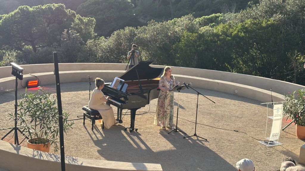 A continuació, la regidora Aymerich ha donat la benvinguda oficial, seguida del parlament institucional del representant de la Generalitat. També hi ha hagut una actuació musical a càrrec de la pianista Viviana Salisi i la soprano Lorena Garcia, qui ens han explicat, a través de diferents fragments musicals, la història d’amor que van protagonitzar Raül i Clotilde, responsables de la construcció i creació d’aquests jardins. Primerament els jardins s’anomenaven La Proa, però en Raül li va canviar el nom a Santa Clotilde quan la seva esposa va morir amb només 32 anys.