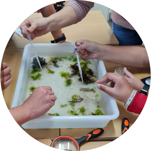 El taller tiene como objetivo principal descubrir y conocer los organismos del litoral mediterráneo, observándolos tanto en su hábitat natural (las rocas de la costa) como en un laboratorio marino equipado con material científico y guías de identificación.