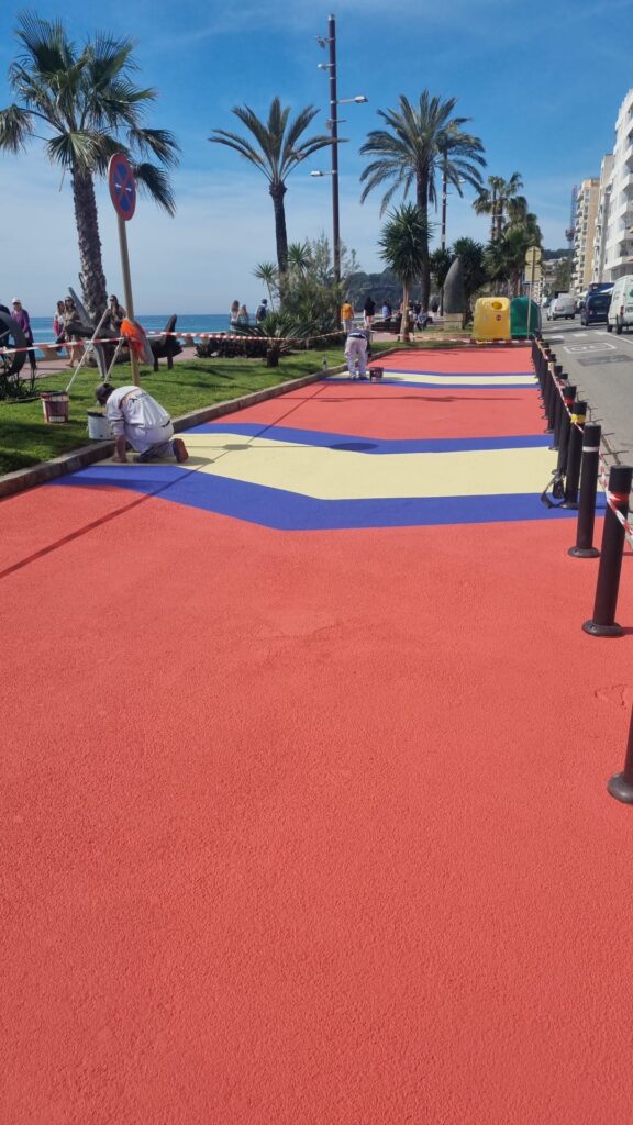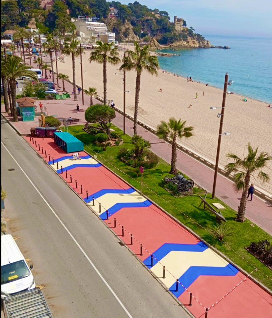 El Passeig Camprodon i Arrieta, a partir del número 20 en Lloret de Mar, ha estrenado este jueves 9 de abril una transformación visible que no ha pasado desapercibida. Un tramo de aproximadamente 50 metros, que hasta hace unos días era asfalto y zona azul con capacidad para unos 15 vehículos, ha sido pintado con colores llamativos dentro de una actuación que busca redefinir el espacio público.