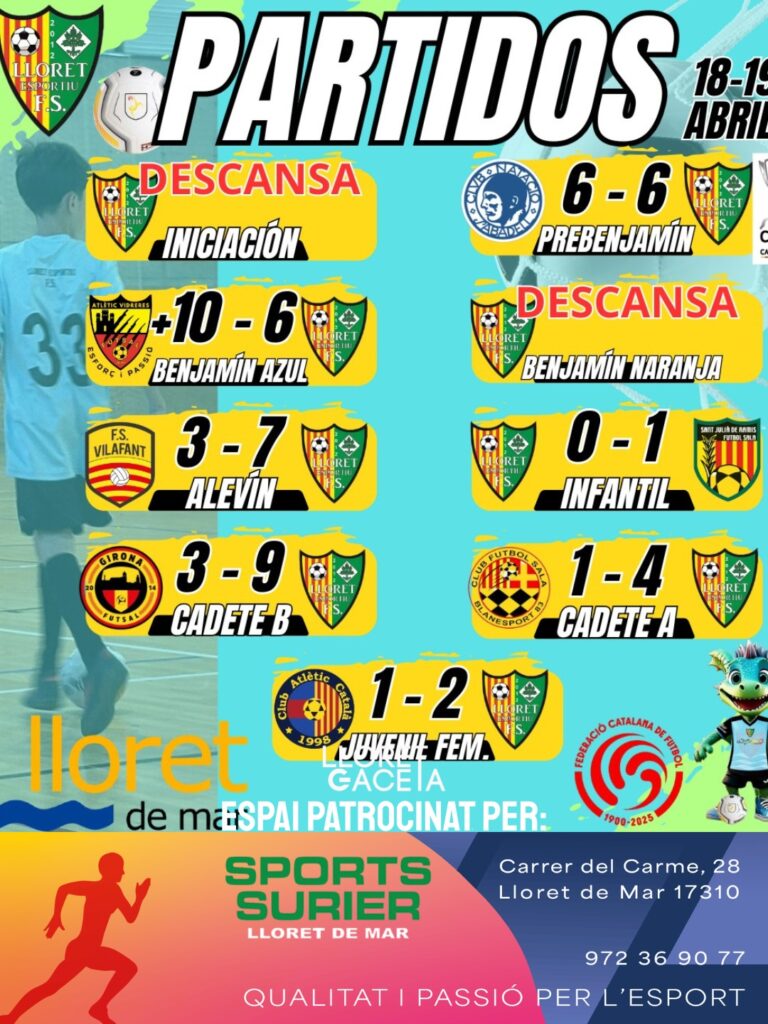 El prebenjamí va sumar un empat (6-6) en un partit marcat per la polèmica i diverses decisions arbitrals que van impedir que els nostres s’enduguessin els tres punts, mentre que el benjamí blau (+10-6) va caure tot i un duel molt competitiu i d’alta intensitat amb sis gols anotats que no van ser suficients per puntuar, l’aleví (3-7) va mantenir la seva bona dinàmica amb una nova victòria gràcies a un joc ofensiu cada cop més fluid i efectiu, l’infantil (0-1) va completar un partit molt complet generant nombroses ocasions i amb sensació que com a mínim mereixia l’empat, el cadet B (3-9) va signar una gran actuació amb una victòria treballada mostrant solidesa en totes les línies, el cadet A (1-4) va guanyar amb comoditat al camp del Blanes i continua molt viu en la lluita pel títol de lliga, i el juvenil femení (1-2) va tancar la jornada amb una victòria molt important que les manté terceres, consolidant el seu gran moment amb un futbol ofensiu de molt nivell.