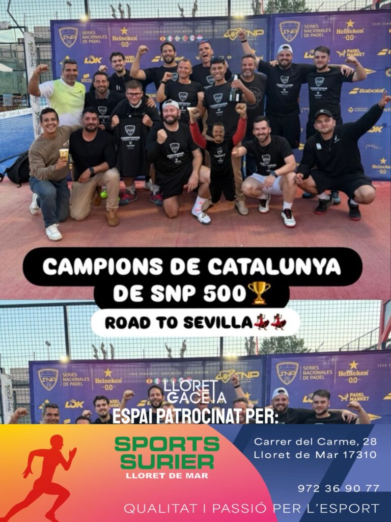 Les jugadores del Club Pàdel Lloret 500 s’han proclamat campiones de Catalunya de les Interseries SNP en la Categoria 500 després d’una temporada impecable, culminada amb una trajectòria impecable des de l’última divisió fins al títol; van superar amb autoritat el playoff de Barcelona i van firmar unes interseries brillants, on van golejar a semifinals amb un contundent 12-0 i van sentenciar la final amb un clar 9-3, demostrant una superioritat total que les porta ara a classificar-se per al màster internacional de Sevilla, que es disputarà els dies 5, 6 i 7 de juny, on s’enfrontaran a equips de Mèxic, Portugal, Suècia i altres comunitats d’Espanya, confirmant així un èxit històric basat en l’esforç, la constància i el treball en equip.
