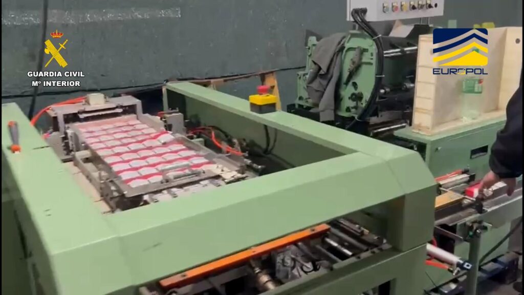 La organización contaba con una capacidad de producción diaria de hasta 900.000 cigarrillos, lo que equivale a unas 45.000 cajetillas al día destinadas a diferentes países europeos. Durante los registros, los agentes localizaron líneas de producción activas, maquinaria valorada en unos 500.000 euros y una infraestructura perfectamente organizada para fabricar, empaquetar y distribuir el producto.