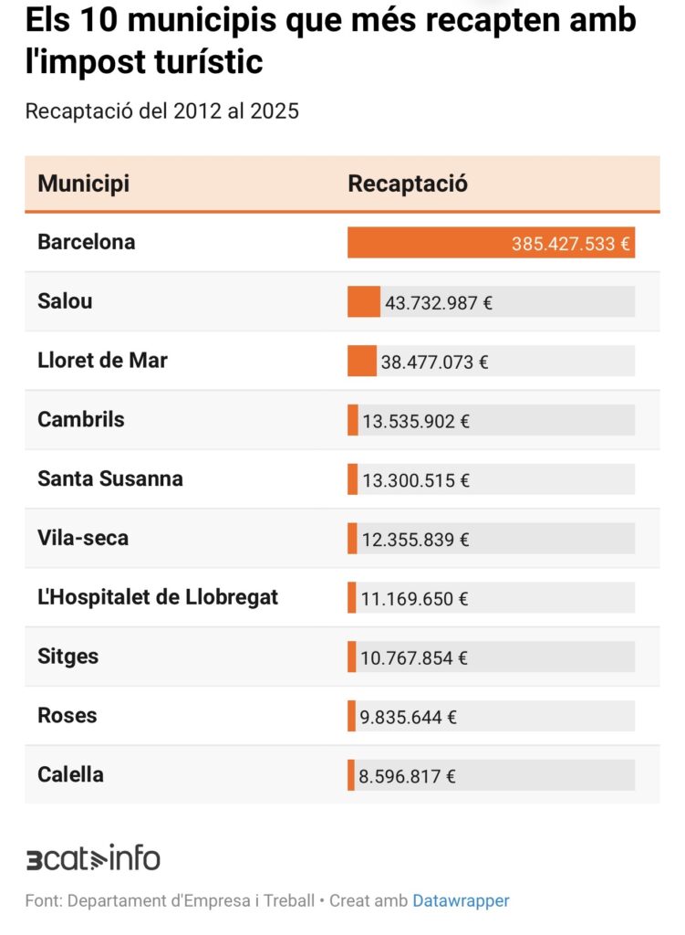 Más allá del impacto inmediato en los visitantes, hay un dato que sitúa a Lloret en el centro del debate: el municipio es uno de los que más recauda por tasa turística en toda Catalunya. Según los datos oficiales, la localidad acumula más de 33,8 millones de euros, solo por detrás de grandes destinos como Barcelona o Salou.