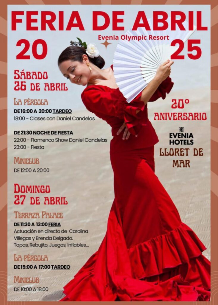 Este año la Feria de Abril del Evenia celebra su 20 aniversario… pero solo podrán disfrutarla quienes se alojen en el resort. Con aforo limitado a 1.200 personas, prometen un fin de semana inolvidable de flamenco, gastronomía y mucha fiesta. Reservas: 972364462. Dirección: C/ Senyora del Rossell, 35.