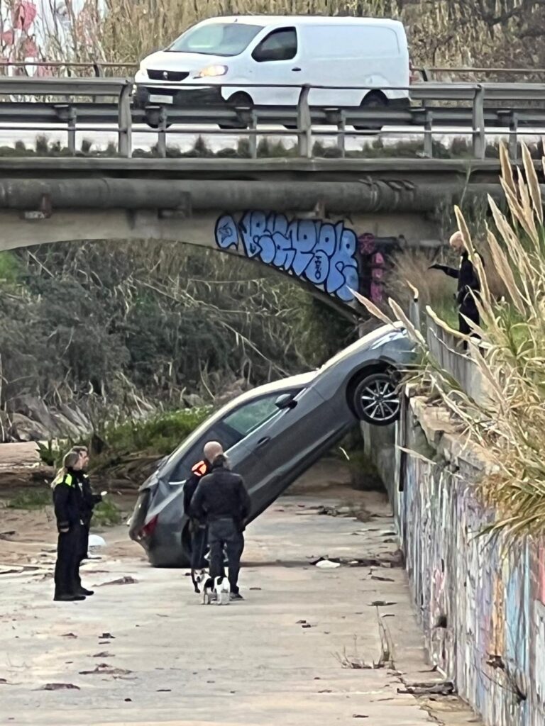 El telèfon d’emergències sonava a les 17:38 h després que el conductor d’un turisme alertés que el seu vehicle havia caigut a la riera que travessa el barri del Rieral, a l’Avinguda del Rieral, a la zona prop del Mercadona.